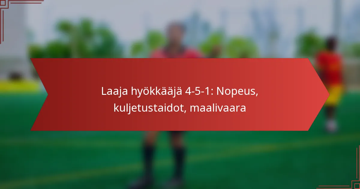 4-5-1-formaatio on jalkapallon taktinen asettelu, joka tasapainottaa puolustuksen vahvuuden ja hyökkäyspotentiaalin, sisältäen neljä puolustajaa, viisi keskikenttäpelaajaa ja yhden hyökkääjän. Sen mukautuvuus mahdollistaa joukkueiden räätälöidä strategioitaan eri vastustajia vastaan, helpottaen tehokasta prässiä ja nopeaa pallon palauttamista pelin hallinnan ylläpitämiseksi. Key sections in the article: Toggle Mikä on 4-5-1-formaatio jalkapallossa? Rakenne ja pelaajien paikat 4-5-1ssä Historiallinen konteksti… Read More »